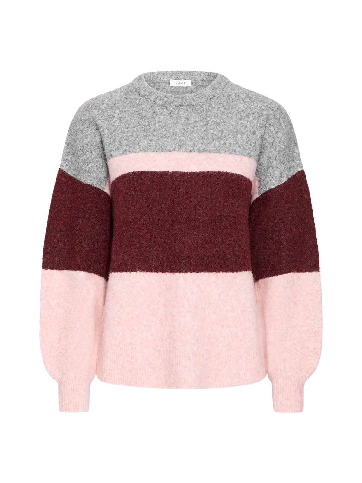 b.young Trui ‘BYOMEA’ grijs gemêleerd / rosa / bordeaux