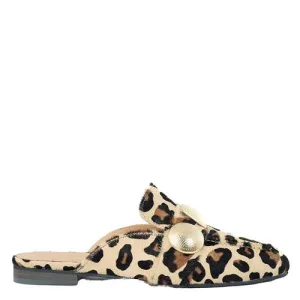 Babouche Alison-2 suède enkellaarzen met panterprint bruin