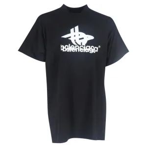 Balenciaga Logo Print Mock Neck T-shirt in Zwarte Katoen