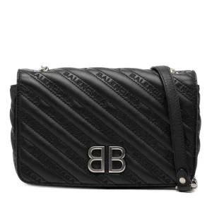 Tweedehands Geëmbossed Leer Allover Logo Bb Portemonnee Op Ketting