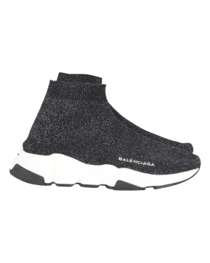 Balenciaga Glanzende Speed Sneakers in Zwart en Zilver Polyester