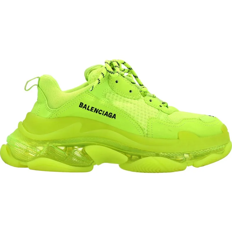 Balenciaga Triple S Transparante Zool Sneakers in Neon Geel Polyester