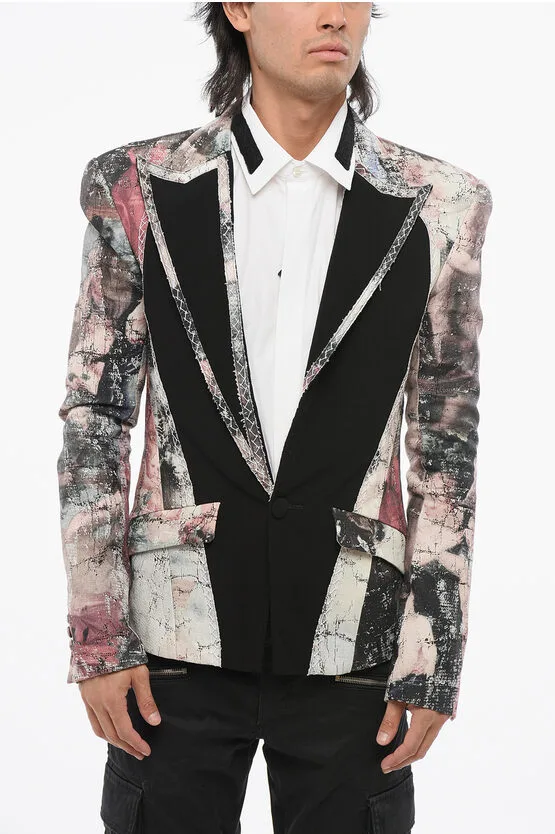 Bedrukt satijnen FIRE kraagloos colbert in oranje