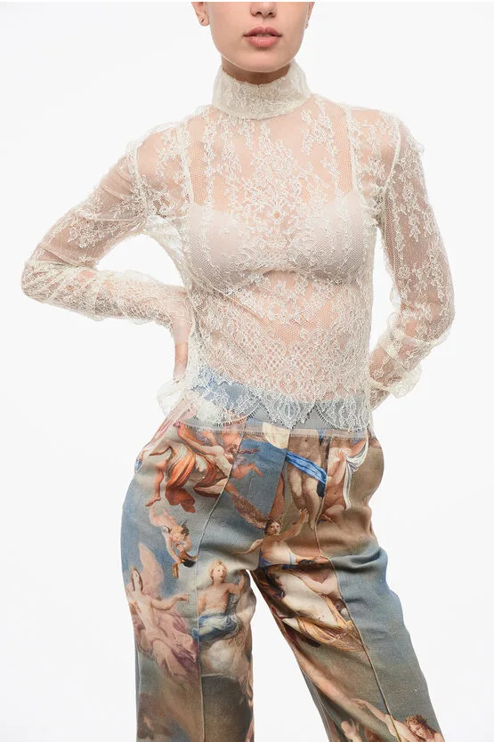 Doorschijnende kanten top met lange mouwen en ritssluiting in wit