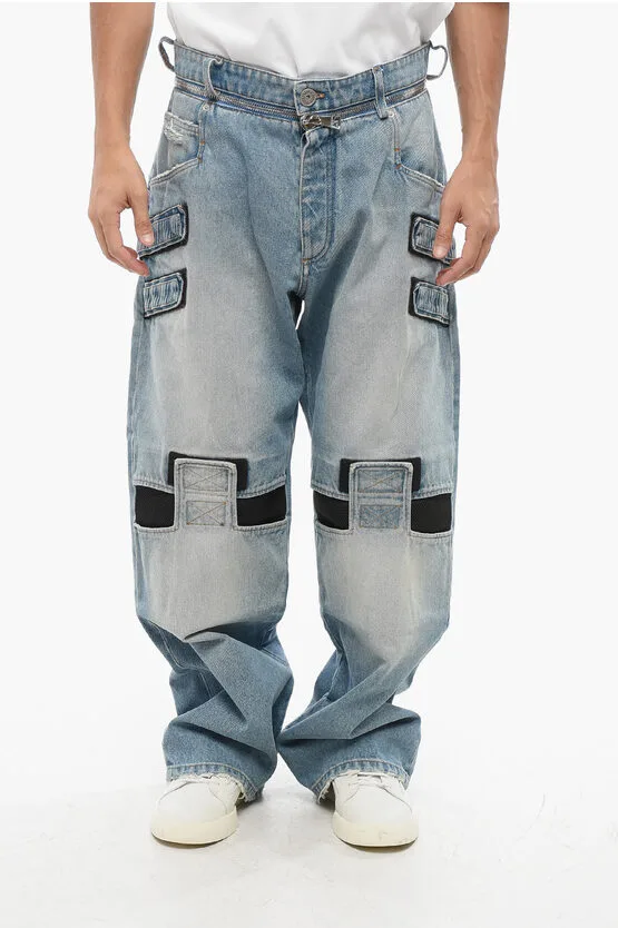 Loose Fit Jeans met klittenbanddetails 26 cm in blauw