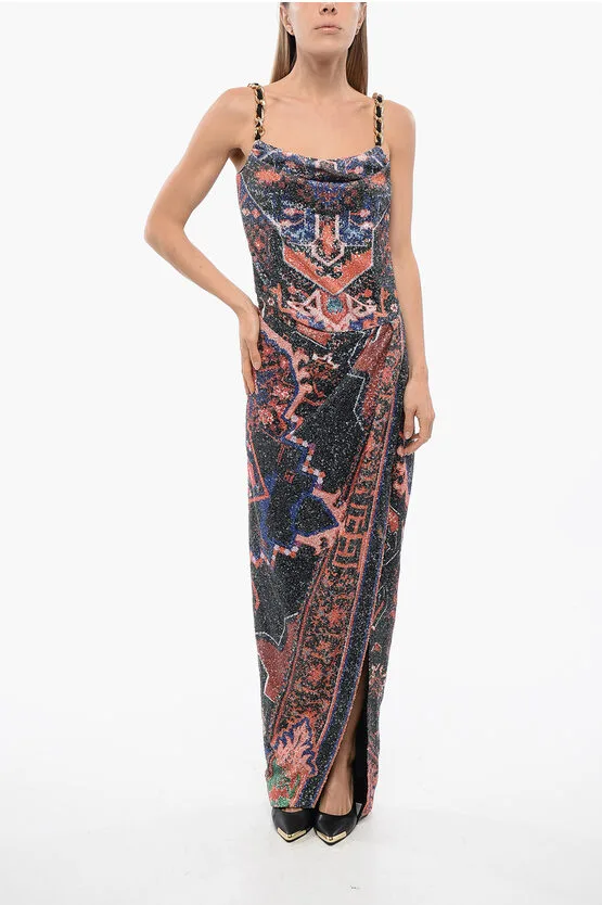 Lange, nauwsluitende minijurk versierd met juwelen in geel