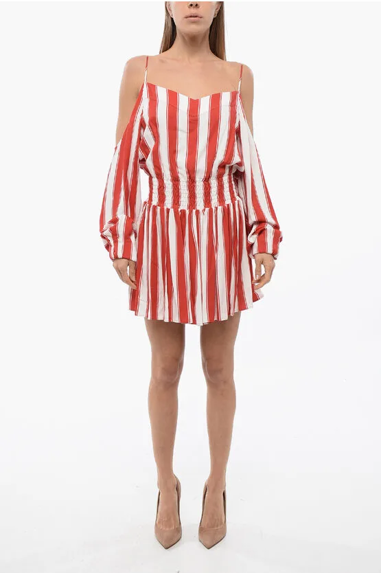Gebalanceerde viscose minijurk met strepen en een ontwerp met blote schouders in rood