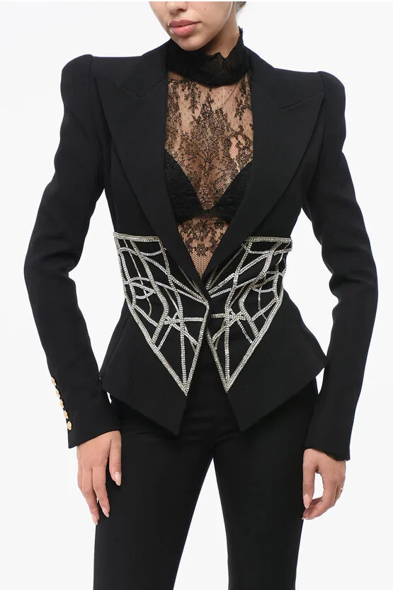Slim fit blazer met siersteendetails en gewatteerde schouders in zwart