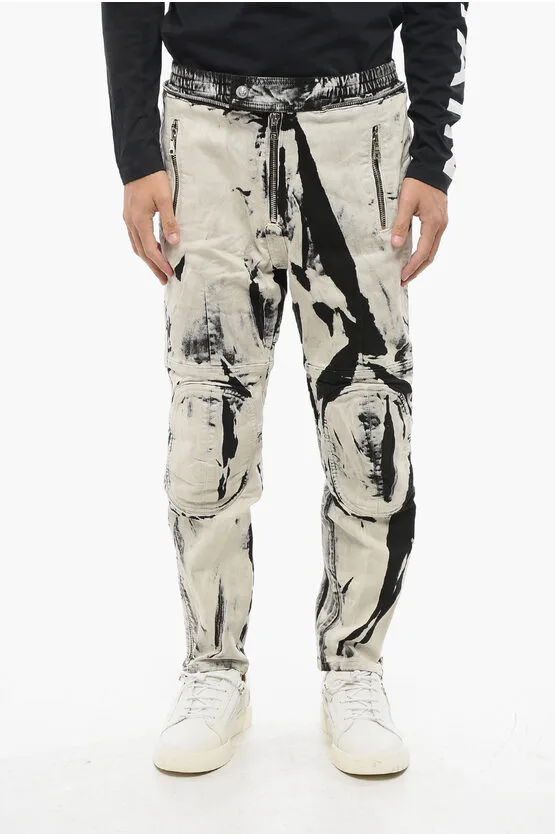 Bikerjeans met acid-wash effect en enkelrits 16 cm in zwart en wit
