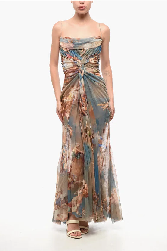 Gebloemde gedrapeerde tule maxi-jurk in veelkleurig
