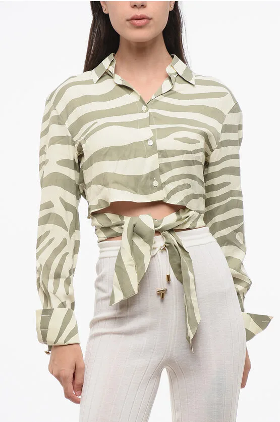 Cropped shirt met dierenmotief en knoopdetail in beige en verde