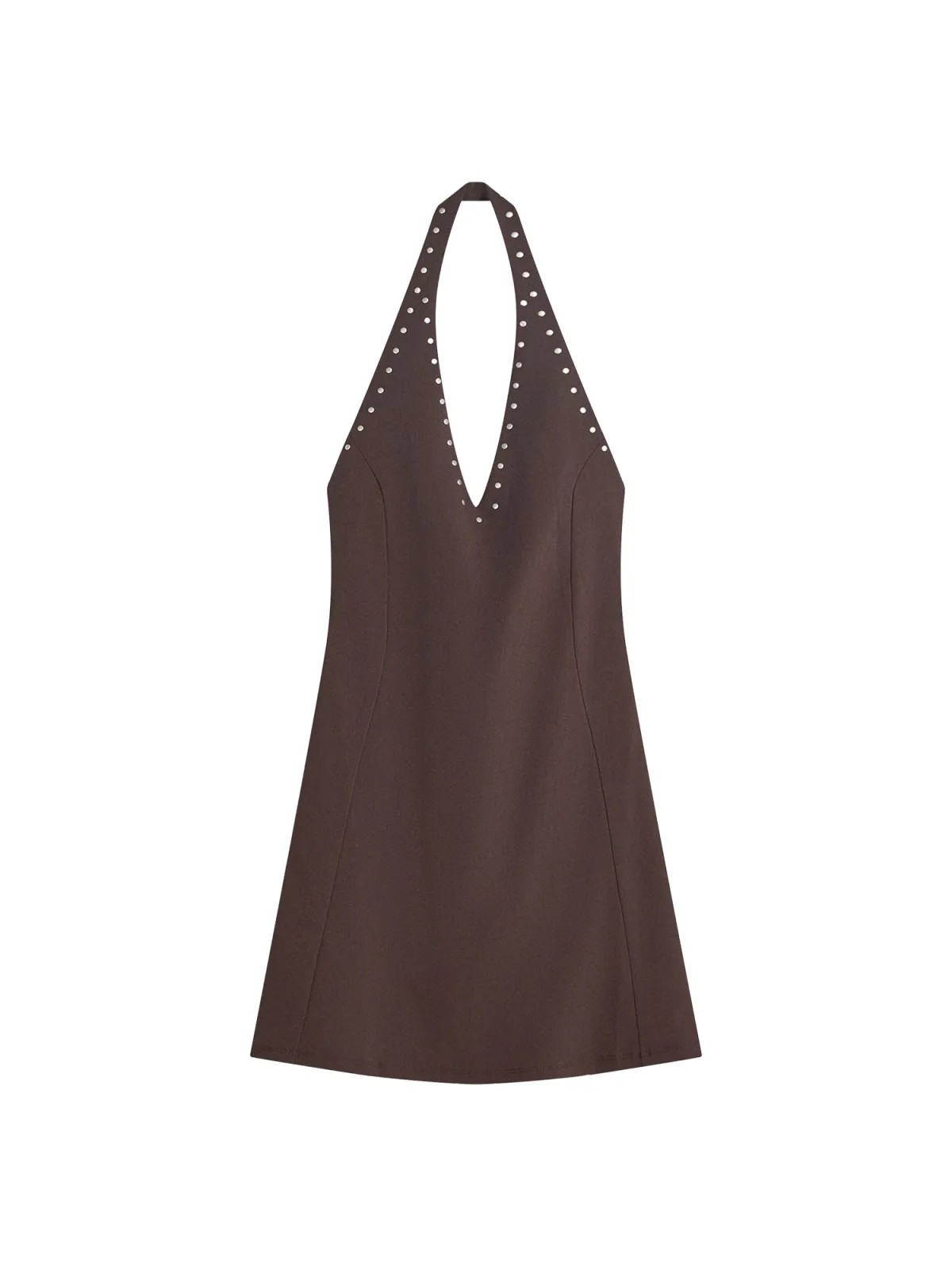 Bershka Zomerjurk beige / crème / bruin / kaki