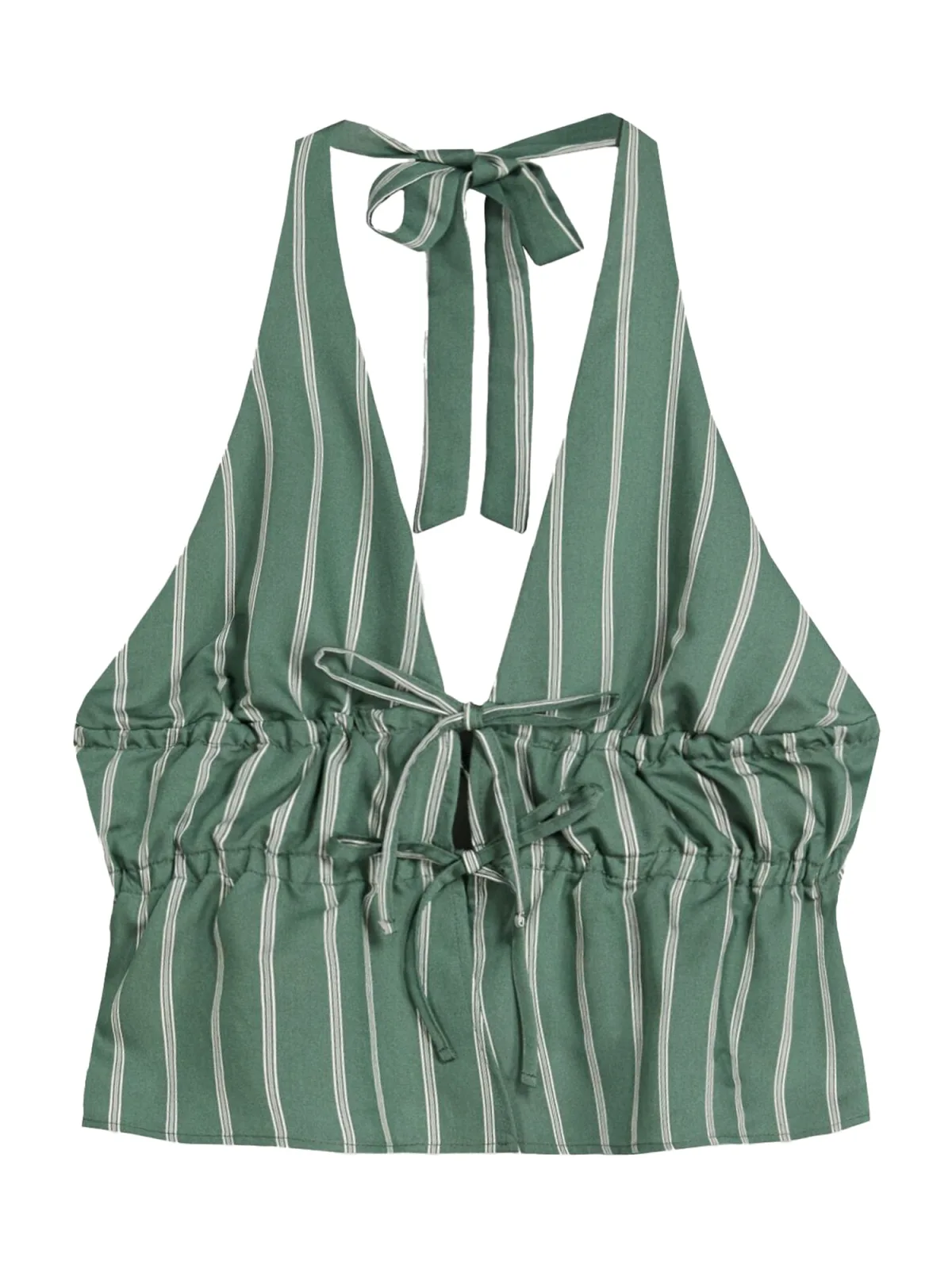 Bershka Top lichtgrijs / jade groen / wit