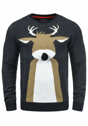 BLEND Trui ‘Rudolph’ nachtblauw / bruin / zwart / wit