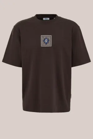 Blue Ridge – Heren heavyweight loose fit T-shirt met print – Loose fit – Donkerbruin – Katoen –