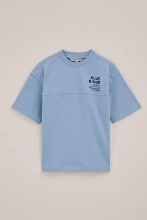 Blue Ridge – Jongens sweat T-shirt met print – Relaxed Fit – Blauw – Katoen –