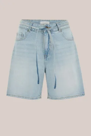 Blue Ridge – Dames mid waist denim short met riem – Mid waist – Lichtblauw – Katoen –