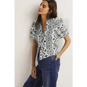 Boden Puff Sleeve Button Blouse Wht