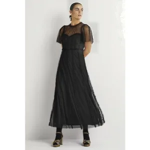 Boden Tulle Maxi Ruffle Party Dress Blk