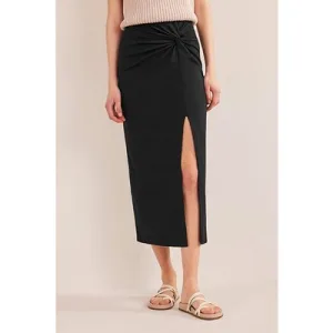 Boden Knot Detail Jersey Midi Skirt Black