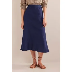 Boden Bias Linen Midi Skirt Navy