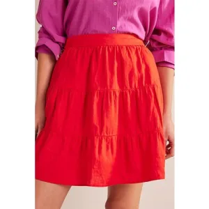 Boden Pull On Tiered Linen Skirt Vermillion Red