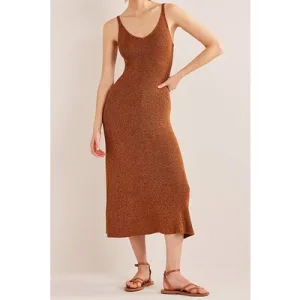 Boden Sparkle Knitted Midi Dress Cognac Bronze, Gold Sparkle