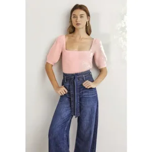 Boden Square Neck Fluffy Jumper Pnk