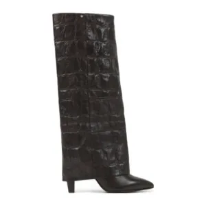 BRONX Low-jadey leren hoge laarzen met crocoprint donkerbruin