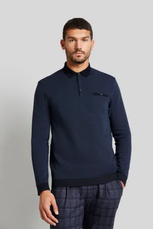 Bugatti Herren Polo met lange mouwen in 2-tone look