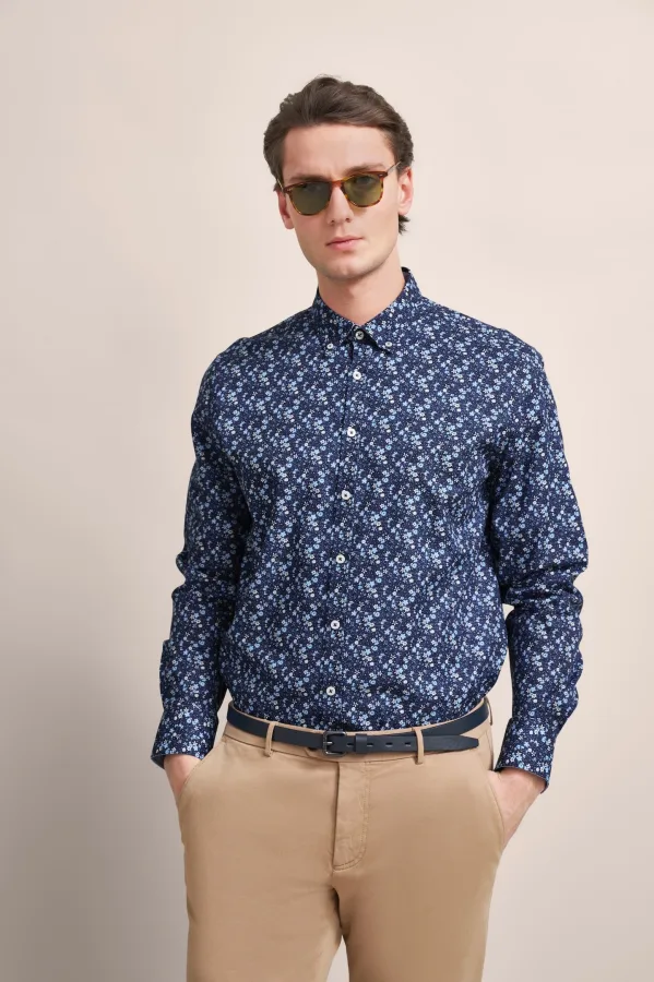 Bugatti Herren Oxford overhemd met bloemenprint