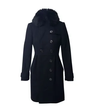 Burberry Mantel met Bont Kraagafwerking in Zwarte Virgin Wol