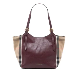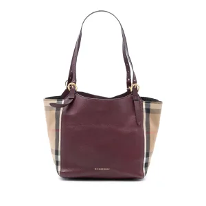 Geverifieerde Kleine Leren En Huischeck Canvas Canterbury Tote