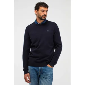 Butcher of Blue trui met wol fijn gebreid donkerblauw