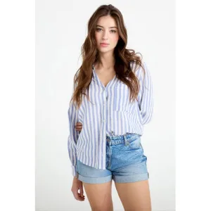 Cache Cache gestreepte blouse met linnen blauw