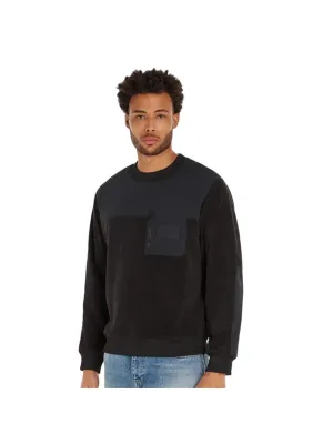 Heren Calvin Klein Jeans Relaxed Katoenen Terry Sweatshirt in Zwart
