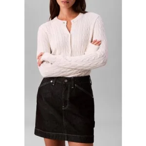 Calvin Klein Wool Cable Crewneck White Greige