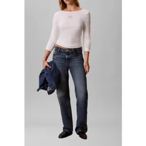 Calvin Klein Ls Scoop Monologo Blouse White Greige