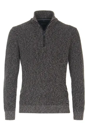 Casa Moda Casual Regular Fit Half-Zip Sweater bruin, Effen