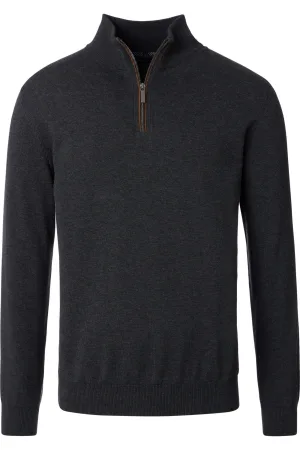 Casa Moda Casual Half-Zip Sweater antraciet, Effen