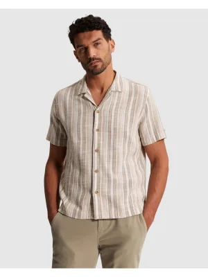 Cast Iron Korte Mouw Overhemd Linnen Blend Wit