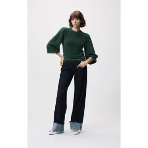 Catwalk Junkie Fuzzy Puff Sleeve Knit Pine Forest