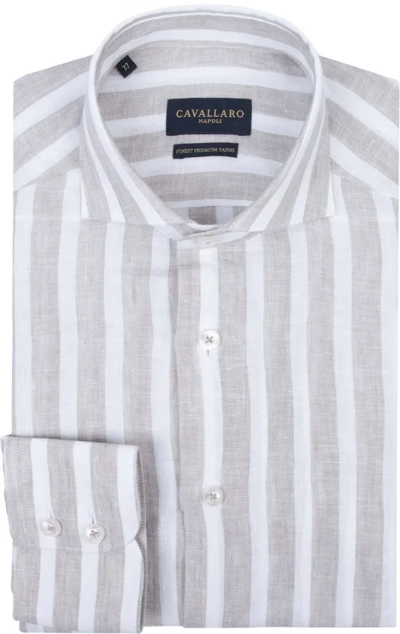 Cavallaro Trenso Overhemd Linnen Streep Beige