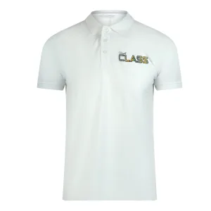 Cavalli Class Dubbel Tipped Kraag Grijs Logo Witte Polo Shirt