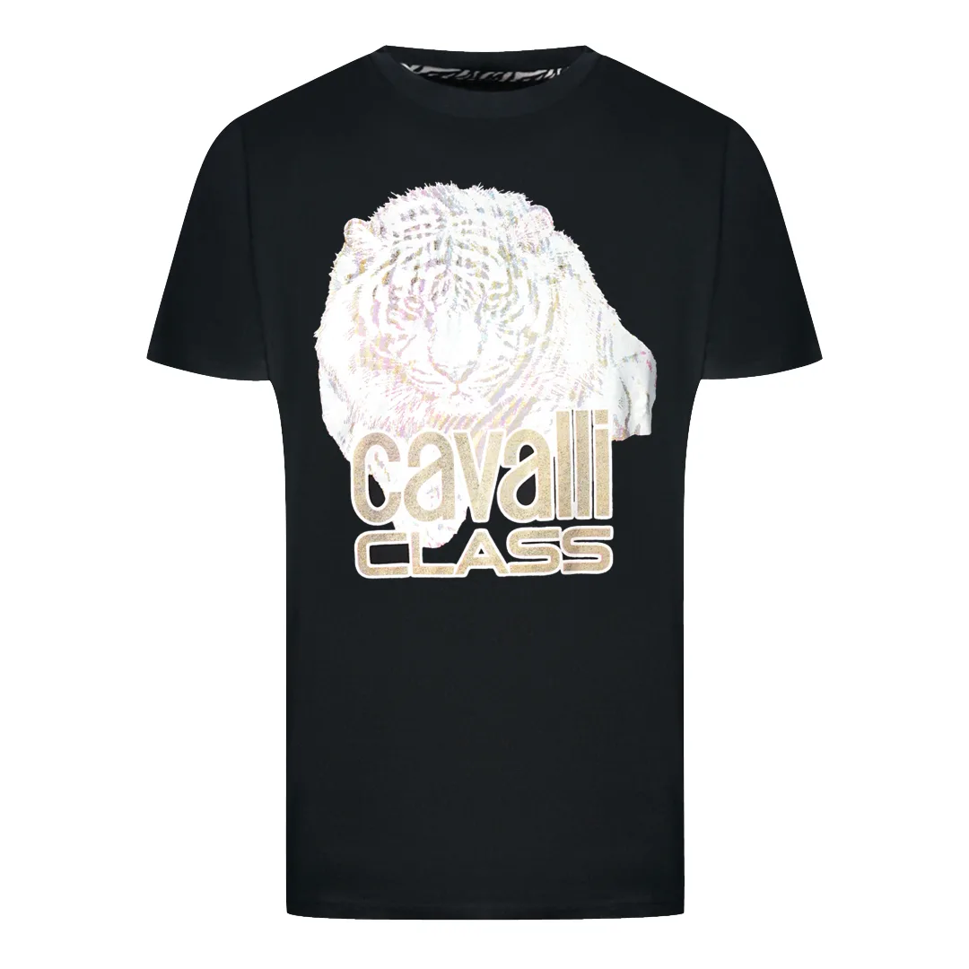 Cavalli Class Grote Tijgerlogo Zwarte T-Shirt