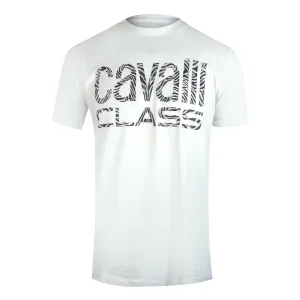 Cavalli Class Opvallend Zebraprint Logo Wit T-shirt