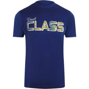 Cavalli Class Levendig Bloemenlogo Blauw T-shirt