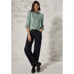 Cecil Dames Slub Shirt met ronde hals in Blauw