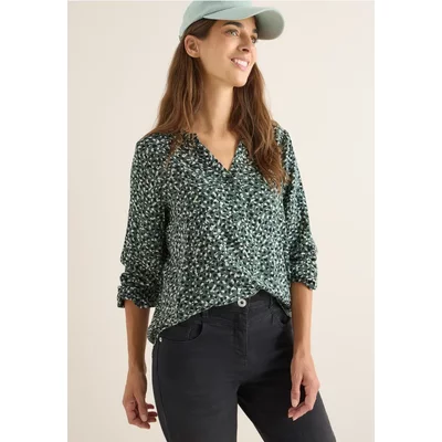 Cecil Dames Gedessineerde blouse met gespleten hals in Groen