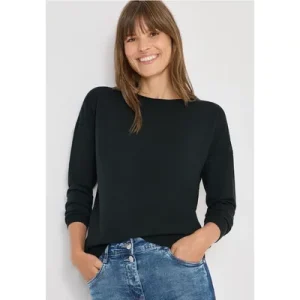 Cecil Dames Gestructureerde trui met ronde hals in Zwart